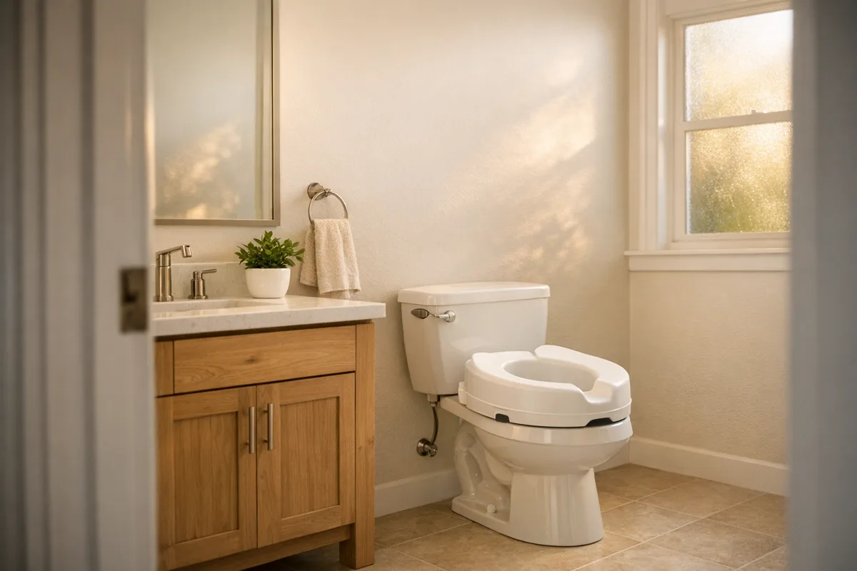 A raised toilet seat is one of the simplest and most impactful aging-in-place modifications you can make. The right one adds 2-6 inches of height, reduces knee and hip strain, and can include handles or safety rails for stable transfers.